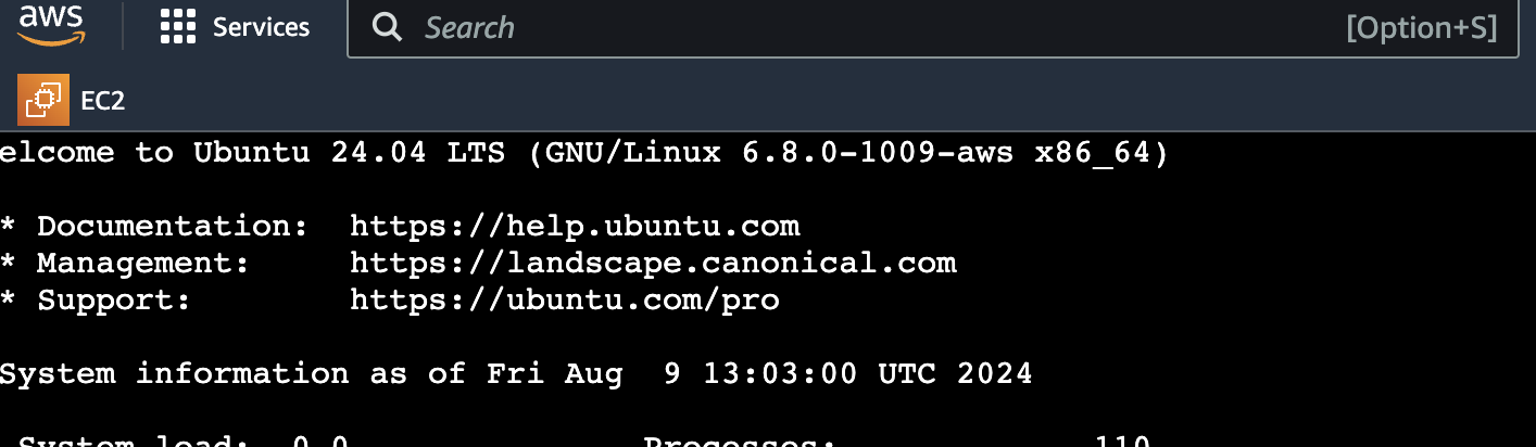 자 이제 그럼 Nginx로 EC2에 서버를 한 번 띄워보겠습니다. 아까 Nginx는 소프트웨어라고 했죠? 그럼 먼저 설치를 해야겠죠. 설치를 해주겠습니다. EC2 터미널에 접속해주세요.