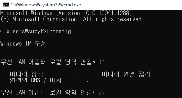 +) 혹시 자신의 ip주소가 궁금하다면 cmd에서 ipconfig를 쳐보면 된다.