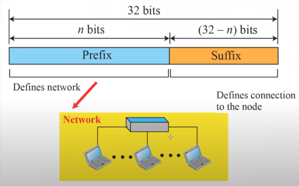 prefix는 부여받은, 정해진 숫자의 한 단체의 네트워크주소이다. 즉 이 주소만을 보고 어떤 회사인지 알 수 있게 된다. 그러므로 바깥에서는 prefix까지만 보고 전송이 가능하다.