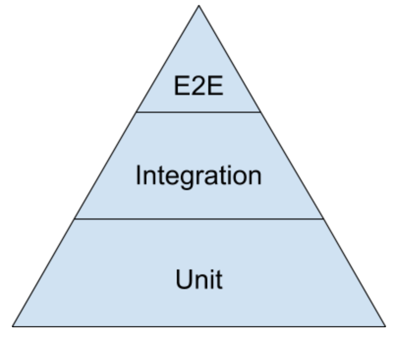 기본적으로 테스팅이란 프로그램이 예상하는대로 동작하는지 확인하는 과정이다. 프론트에서는 기본적인 기능, 성능 외에도 UI가 추가적으로 테스팅 범위에 추가가 된다. 그래서 테스트 피라미드가 등장하게 되는데, 아래에서부터 단위, 통합, E2E(End to End, 끝단 UI)테스트로 구성되어 있다.